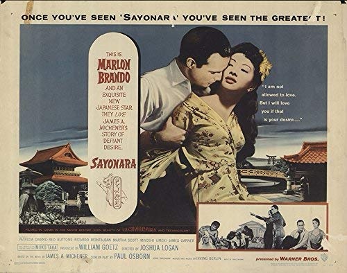 The son of a four-star general mumbles, generally. Is this when the mumbling started, Marlon? The general is perturbed when he is asked to be the best man at the wedding of his coworker to a Japanese woman in a post-World War II haze of hatred. He is only perturbed until he meets a captivating Japanese dancer and throws out his relationship with an American girl (not the one Tom Petty sang about) to date the pretty dancer. Unfortunately, the military personnel don’t swoon over love stories and soon, the couples have to decide whether their romances can survive racism.